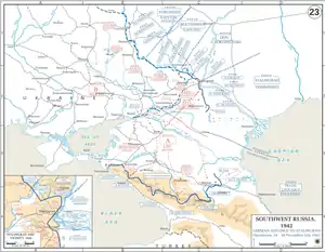 صار الجيش السادس بعيدا عشرات الكيلومترات فقط عن ستالينغراد، أما الجيش الرابع بانزر الموجود في جنوبها فسيتجه شمالا للمساعدة في إخضاع المدينة. إلى الجنوب مجموعة الجيوش «ب» تندفع إلى منطقة القوقاز، لكن تقدمهم تباطأ بسبب تزايد مدى خطوط الإمدادات. لم تكن مجموعتا الجيوش تساعدان بعضهما البعض نظرا للمسافة الكبيرة الفاصلة بينهما.