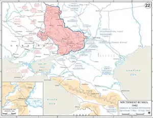 الهجوم الألماني الصيفي في الجبهة الجنوبية والشرقية كان مقيدا بهدفين رئيسيين: الوقت والموارد المادية. هتلر كان يصر على إنهاء الهجوم قبل أن يصير دخول الولايات المتحدة الأمريكية أمرا لا مفر منه، إضافة إلى عزمه على تأمين نفط منطقة القوقاز لصالحه، ما يمنعه عن السوفيات ويؤمن موارد نفط اضافية لألمانيا[9]:p.528.