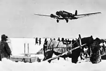| حوالي 740,000 بين قتيل، مفقود وجريح بينهم 91,000 أسير 900 طائرة (بينها 274 طائرة نقل و165 مقنبلة استعملت كطائرة نقل) |