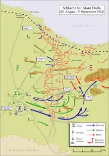 - كان خطة رومل تقضي بالقيام بهجوم تضليلي في الشمال على يد الفيلقين العاشر والحادي والعشرين الإيطاليين، في حين يكون الهجوم الرئيسي هو حركة التفافية في الجنوب بواسطة الفيلق الأفريقي الألماني والفيلق العشرين الإيطالي، ثم الاتجاه شمالاً نحو علم حلفا ثم الاتجاه إلى الإسكندرية (وهي خطة مشابهة لتلك التي استخدمت في معركة عين الغزالة).
