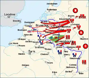 القوات الفرنسية المنتشرة في الشمال كانت مكونة من 3 مجموعات جيوش، مجموعة الجيوش 2 و3 للدفاع عن خط ماجينو من ناحية الشرق، ومجموعة الجيوش 1 بقيادة غاستون بيلوت التي تتمركز في الغرب ومستعدة للتحرك للأمام نحو البلدان المنخفضة.