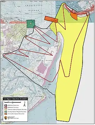- الاعتداء على Battery Wagner : الخرائط والتاريخ والصور وأخبار الحفظ ( Civil War Trust )