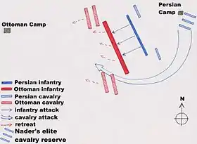 | 100 ألف فرسان ، 40 ألف مشاة الانكشارية .[2] | 80 ألف مشاة.[3][4] و 40 ألف فرسان . | ||||||||