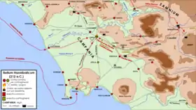 كان الجنوب الإيطالي بأكمله قد تحالف مع القرطاجيين باستثناء ريجيوم وتارنتيوم. تعرضت مدينة كابوا كبرى مدن الجنوب الإيطالي وقاعدة حنبعل الشتوية والتي تحالفت معه بعد كاناي، في الوقت الذي فيه حنبعل يحاصر قلعة مدينة تارنتيوم، بعد أن استولى على تلك المدينة.[1]