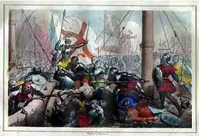 ![]() نقش حجري يصوّر معركة ميلوريا بريشة أرمانيو (1284) | |||||||
