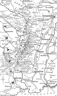 ![]() خريطة توضح العمليات العسكرية في الألزاس، 1914. | |||||||