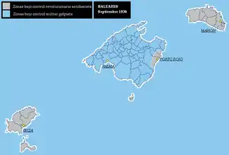 وفي يومي 9 و10 سبتمبر وصلت مجموعتان من الميليشيات من مائتين وثلاثمائة رجل إلى جزيرة إيبيزا من برشلونة استجابةً لطلبات الدعم من لجنة مكافحة الفاشية في إيبيزا. فقامت مجموعة من رجال المليشيات في ليلة 13 سبتمبر 1936 بإعدام معظم الأسرى البالغ عددهم 93 سجينًا الذين كانوا محتجزين في قلعة إيبيزا ردًا على القصف الذي تعرضت له المدينة في ذلك اليوم.[17] ولكن بالرغم من جميع الإحتياطات فقد استولى المتمردون على الجزيرة يوم 19 سبتمبر.[14] وانتهى نهائيا ماسمي بإنزال ميورقة بعدما قامت القوات المتمردة قادمة من بالما دي مايوركا باحتلال إيبيزا وفورمينتيرا يوم 20 سبتمبر.