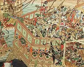 | تحطم 30 سفينة (سجلات يي);[1]:314تدمرت أكثر من 30 سفينة تقديرات حديثة[2][3]