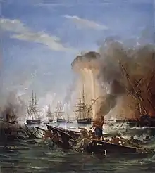 ![]() معركة نافارين البحرية (1827). رسم زيتي من طرف قارنوراي. | |||||||