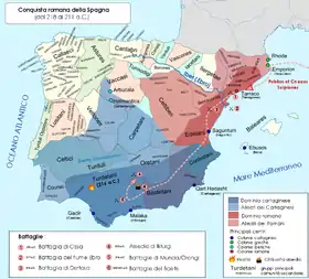قرر صدربعل برقا، القائد القرطاجي في أيبيريا، شنّ حملة مشتركة من قواته البرية وأسطوله لتدمير قاعدة الرومان شمال نهر أبرة، لكن قواته البحرية هُزمت تماما بعد هجوم مباغت من قبل السفن الرومانية وخسرت 29 سفن، كما فقدت السيطرة على البحار المحيطة بأيبيريا. تحسنت سمعة الرومان في أيبيريا بعد هذا النصر، مما تسبب في تمرد بعض القبائل الأيبيرية التي كانت تحت سيطرة القرطاجيين.