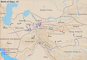أدى وصول العباسيين إلي سدة الخلافة إلي استقرار الدولة الاسلامية وبالتالي التفكير في تأمين حدودها، فأرسل الخليفة أبو جعفر المنصور الي أبو مسلم واليه علي خراسان بالتحضير بحملة لاستعادة هيبة المسلمين في تركستان(اي آسيا الوسطي) فقام أبو مسلم بتجهيز جيش زحف به إلي مدينة "مرو" وهناك وصلته قوات دعم من إقليم طخارستان -يقع هذا الإقليم في أفغانستان- وسار أبو مسلم بهذا الجيش إلى سمرقند وانضم بقواته مع قوات زياد بن صالح الحارثي الوالي السابق للكوفة، وتولي زيادة قيادة الجيش.