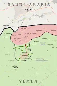شنت قوة عسكرية مدعومة سعوديا يبلغ قوامها حوالي 1100 مقاتل من لواء الفتح هجومًا في وادي آل جباره في محافظة صعدة اليمنية ضد القوات الحوثية. [3]