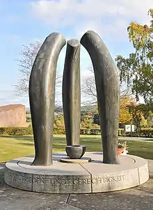يكرم النصب التذكاري البرونزي لنحات لوكسمبورغ لوسيان ويركولييه السجناء والذين قُتلوا في المعسكر.