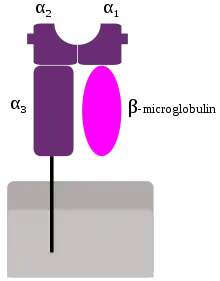 ويتكون معقد MHC-I من جزيء يرتبط بغشاء الخلية من سلسلة ثقيلة (heavy chain, HC), وجزء آخر صغير قابل للذوبان Β2-Mikroglobulin و جزيء ببتيد. فيكون معقد البروتين مكونا من أربعة أجزاء : الجزء α وهو يتكون من ثلاثة أجزاء (α1 إلى α3), و β2-Mikroglobulin .