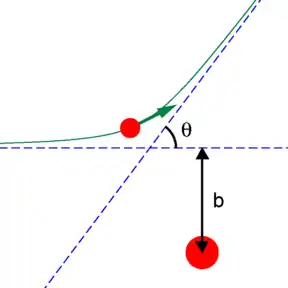 معلم الصدم b وزاوية التبعثر θ .