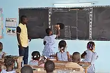 المعلم يقدِّم دورات في فئة CE2 في أبيدجان (ساحل العاج)