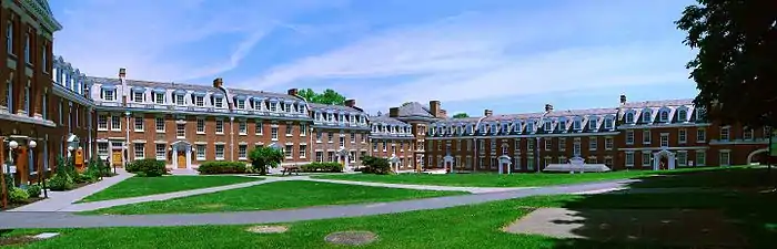 بعد الحرب العالمية الثانية ، خضع الحرم الجامعي مرة أخرى لتوسيع كبير. تم بناء تسعة صالات نوم مشتركة على الحافة الشرقية للحرم الجامعي المتاخم لشارع Burdett ، وهو الموقع الذي أطلق عليه اسم "Freshman Hill". أعيد تجميع هيوستن فيلد هاوس (1949) ، بعد أن تم نقله إلى قطع من موقعه الأصلي في رود آيلاند . استحوذ المعهد على القاعة الغربية ، التي بنيت في الأصل عام 1869 كمستشفى ، في عام 1953. المبنى المزخرف هو مثال على العمارة الفرنسية الثانية للإمبراطورية . [14] تم إدراجه في السجل الوطني للأماكن التاريخية في عام 1973.