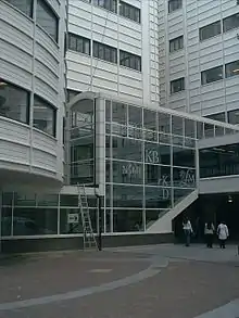 معهد هولندا لتاريخ الفن (RKD) يشارك البناية ذاتها في وسط لاهاي مع المتحف الأدبي الهولندي (LM) ومعهد هيغنز للتاريخ الهولندي (ING) ومعهد الموسيقى الهولندي (NMI) ومكتبة هولندا الوطنية (KB) لذلك تظهر شعاراتهم على النوافذ.