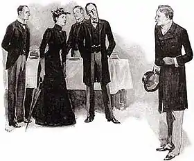 يأتي اللورد سانت سايمون إلى شرلوك هولمز,طالبا منه المساعدة في إيجاد خطيبته، هاتي، التي اختفت مباشرة بعد حفل الزفاف، ويقول انه يشك في انه تم قتلها من طرف عشيقته السابقة فلورا.يتم إيجاد ثوب حريري يخص العروس هاتي طافيا في بحيرة سيربنتين في هايد بارك يحتوي وذلك الثوب له جيب فيه علبة بطاقات فيها رسالة صغير كتب فيها:"سوف نتقابل عندما يجهز كل شيء، تعالي فورا.ف م".يظن الشرطة أن فلورا هي من قامت بكتابة تلك الرسالة وتوقيعها بالأحرف الأولى لإسمها ويعتبر الرسالة دليلا لتورطها في اختفاء هاتي، لكن هولمز يكتشف بعد تحقيقاته ان هاتي حاليا مع زوجها السابق، فرانسيس مولتون(وهذا هو سر الأحرف س وم اللذان وقعت بهما الرسالة)الذي ظنت أنه ضاع للابد (تم خطفه من قبل الهنود),لكنه عاد للظهور مرة أخرى، ولسوء الحظ لم ينجح زوجها السابق في ايجدها الا يوم زفافها، وقد قررت هاتي العودة إلى زوجها الأول والبقاء معه، ورغم تقديمها اعتذارا للورد سانت سايمون، إلا أن هذا الاخير لا يقلبه ويقول انها استغلته بطريقة بشعة.