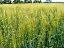 سنابل قمح مصابة بمغزلاوية النجيليات (سنيبلات باللون الأصفر)