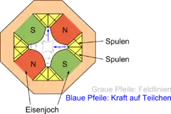 مغناطيس رباعي الأقطاب (Quadrupole magnet) يتكون المغناطيس رباعي الأقطاب من أربعة أقطاب مغناطيسية مرتبة بحيث تكون الأقطاب الشمالية مواجهة للأقطاب الجنوبية .[1] عند حسابه رياضيا يتعامل معه كمتسلسلة عديدة الأقطاب للمجال المغناطيسي . يمكن تمثيله أيضا كرباعي أقطاب كهربائي.