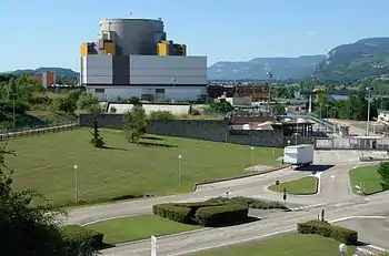 وما يخرج من مخرج العنفة من بخار يُكثف في أحد المكثفات فيعود إلى حالة الماء التي تعاد إلى دائرة الدورة الثانوية. ويستخدم المكثف مياه نهر قريب لتبريد وتكثيف البخار.