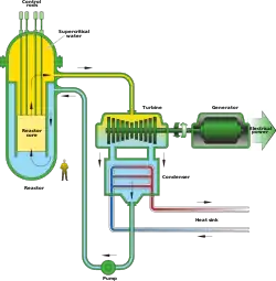 يصبح الماء الذي يتم تسخينه في قلب المفاعل سائلاً فوق الحرج أعلى من درجة الحرارة الحرجة البالغة 374 درجة مئوية حيث ينتقل من سائل يشبه الماء السائل إلى سائل يشبه البخار المشبع (والذي يمكن استخدامه في التوربينات البخارية) دون المرور عبر مرحلة متميزة من انتقال الغليان.[3]