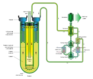 ويجري تبريد المفاعل بواسطة الحمل الطبيعي حيث يخرج المبرد من المفاعل عند درجة 550 درجة مئوية، وربما مزداد حتى درجة 800 درجة مئوية عند استخدام مواد مستحدثة. ودرجة الحرارة هذه عالية بالقدر بحيث ستسمح بإنتاج [[الهيدروجين بالطرق الكيميائية الحرارية التي تستخدم دورة الكبريت واليود Sulfur-iodine cycle.