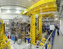 في حفل افتتاح في يوم 20 مايو سنة 2014 تم الإعلان رسميا عن الانتهاء من مرحلة التشييد. وبعد فترة من التحقق الدقيق من أي تسريب في الوعاء، ومع بداية صيف 2014 تم تفريغ منظم البرودة، وفي يوليو 2015 تم الانتهاء من اختبار المغناطيس.