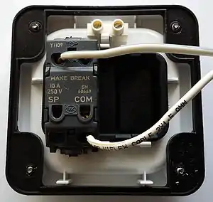 - مفتاح دفع لجعل يسمح للكهرباء أن تتدفق بين نقاط التلامس. عندما يعمل المفتاح، فإن الدائرة تكسر. هذا النوع من المفاتيح يطلق عليه مفتاح مفتوح طبيعيا. (أمثلة: جرس الباب، مفتاح الطاقة بالكمبيوتر، أزرار الحاسبة والمفاتيح الخاصة بلوحة المفاتيح).
