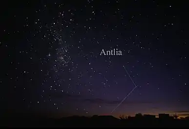 |CitationClass=تم تجاهله (مساعدة) - Ridpath, Ian. "Antlia". Star Tales. مؤرشف من الأصل في 15 سبتمبر 2020. اطلع عليه بتاريخ 03 ديسمبر 2007. الوسيط
