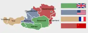 ومع تقسييم النمسا إلى أربعة مناطق نفوذ؛ سوفيتية وأمريكية وبريطانية وفرنسية، تم تقسيم فيينا إلى أربعة مناطق مماثلة مع الاحتفاظ بوسط المدينة كمنطقة نفوذ دولية أُتخذت مقرًّا لمفوضية الحلفاء ويتناوب الإشراف عليها كل من القوات الأربعة المتواجدة في البلاد.