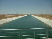 ترعة الشيخ زايد ، وإلى اليسار ترى بعض المشروعات الزراعية.
