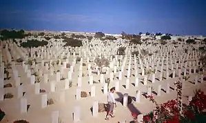 حيث يمكن للزوار أن يقوموا بزيارة المقبرة العسكرية الإيطالية والألمانية في منطقة تل عيسى خارج مدينة العلمين . تحتوي المقبرة الألمانية على بقايا 4200 جندي ألماني وقد بنيت على طراز قلاع العصور الوسطى. بينما تبدو المقبرة الإيطالية وكأنها متحف للمقابر، وكلما أمكن كل شاهد قبر يحمل اسم الجندي، ولكن الكثير يوجد عليه لفظة مجهول بالإيطالية "IGNOTO" - أو جندي مجهول.