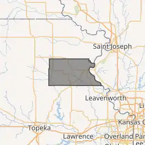 - "صفحة مقاطعة أتشيسون (كانساس) في خريطة الشارع المفتوحة". OpenStreetMap. اطلع عليه بتاريخ 7 مارس 2021. الوسيط