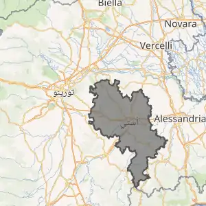 - "صفحة مقاطعة أستي في خريطة الشارع المفتوحة". OpenStreetMap. اطلع عليه بتاريخ 4 مارس 2021. الوسيط