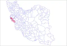 ![]() Location of the Eyvan County (red) within Iran with Ilam province depicted in light red. | |