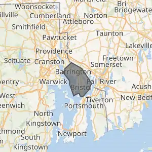 - "صفحة مقاطعة بريستول (رود آيلاند) في خريطة الشارع المفتوحة". OpenStreetMap. اطلع عليه بتاريخ 9 مارس 2021. الوسيط
