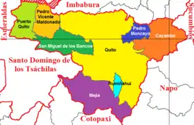 بيتشينتشا هي مقاطعة في الإكوادور تقع في منطقة سييرا الشمالية؛ عاصمتها وأكبر مدنها هي كيتو.[3][4][5] قبل عام 2008، كان كانتون سانتو دومينغو دي لوس كولورادوس جزء من مقاطعة بيتشينتشا. أصبح منذ ذلك الحين تابع لمقاطعة خاصة به وهي سانتو دومينغو دا لوس تساتشيلاس.