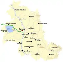 |CitationClass=تم تجاهله (مساعدة); تحقق من التاريخ في:|تاريخ أرشيف=(مساعدة) - "Provincia di Perugia". CertEnt. مؤرشف من الأصل في 04 مارس 2016. اطلع عليه بتاريخ 16 سبتمبر 2014. الوسيط