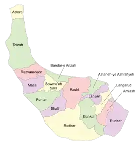 | النواحي | Central District (Talesh County)، Asalem District، Haviq District، Kargan Rud District |