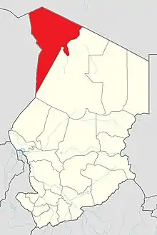 تحد المنطقة ليبيا من الشمال ومنطقة بوركو من الشرق والنيجر من الغرب. وتقع في أقصى شمال مناطق تشاد، فهي تعتبر قليلة السكان، من حيث كونها جزءًا من الصحراء الكبرى . تحتوي ايضا على أجزاء من جبال تيبستي ، و جزء من عرق بيلما، كما هي ايضا مساحة شاسعة من الكثبان الرملية في وسط الصحراء. تقع الحدود الشمالية للمنطقة داخل قطاع أوزو ، وهي نقطة خلاف بين تشاد وليبيا على مر التاريخ . [12]