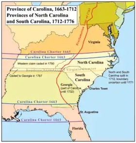 أعطى تشارلز الثاني الأرض لمجموعة من ثمانية نبلاء أطلق عليهم أصحاب اللوردات . خططوا لمستعمرة مسيحية بروتستانتية . في الأصل كانت مستعمرة مملوكة ملكية واحدة، ونمت الأجزاء الشمالية والجنوبية مع مرور الوقت، ويرجع ذلك جزئيًا إلى الإهمال من قبل الورثة القانونيين (الفرديين) لمالك اللورد الأصلي. أدى الخلاف حول الحكم في المقاطعة إلى تعيين نائب حاكم لإدارة النصف الشمالي لمستعمرة كارولينا في عام 1691. أصبح تقسيم مقاطعة كارولينا إلى ولاية كارولينا الشمالية كارولينا الجنوبية مكتملًا في عام 1712.