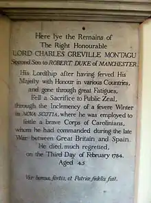 كان اللورد تشارلز مونتاجو (1741-1784) الحاكم الملكي لمقاطعة كارولينا الجنوبية من 1766 إلى 1773 حتى هرب إلى نوفا سكوتيا كما هو الحال مع زملائه قي الإمبراطورية المتحدة .