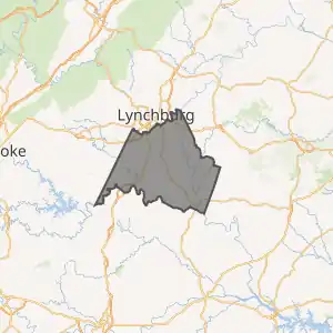 - "صفحة مقاطعة كامبل (فيرجينيا) في خريطة الشارع المفتوحة". OpenStreetMap. اطلع عليه بتاريخ 8 مارس 2021. الوسيط