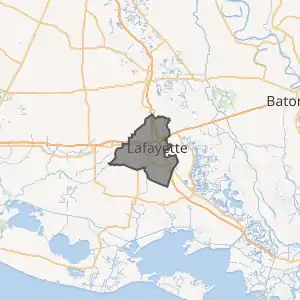 - "صفحة مقاطعة لافايت (لويزيانا) في خريطة الشارع المفتوحة". OpenStreetMap. اطلع عليه بتاريخ 6 مارس 2021. الوسيط
