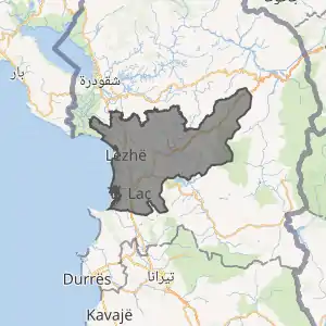 ![]() موقع مقاطعة لجه داخل ألبانيا. | |