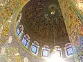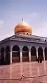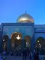 ويقع فوق القبر مباشرة، قبة يبلغ ارتفاعها عن سطح الأرض 20 مترا وقطرها 10 مترا وتم إكسائها من الخارج بصفائح نحاسية مطلية بالذهب. وامّا من الداخل كسيت جدرانها بالقاشاني المزخرف. وعلى جانبي القبة تقوم مئذنتان ارتفاع كل منهما 50 متراً وقطرها 2.5 متر، تم إكسائها من الأعلى بالقيشاني المعرق تتخلله أسماء الله الحسنى.