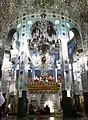 وامّا الضريح فهو مصنوع من طراز الدرابزون، من الفضة الخالصة، أهدته أسرة باكستنية سنة 1954م. وفي داخل الضريح صندوق خشبي مصنوع من خشب الابنوس الفخم ومطعم بالعاج والذهب وهو تحفة فنية ومحاط بسور من الزجاج البللور الصافي. وقد كتبت عليه آيات قرآنية، صنعه أكبر فنان في طهران وأهداه تجارإيرانيين سنة 1955 .[7]
