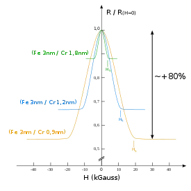 ذلك التأثير يجعل المقاومة الكهربية للعينة يعتمد على اتجاه المغناطيسية في الطبقات المغناطيسية، وتكون المقاومة أعلى في حالة أن يكون اتجاه المغناطيسية في الطبقات معاكسا، عن المقاومة عندما تكون مغناطيسية الطبقات في نفس الاتجاه.